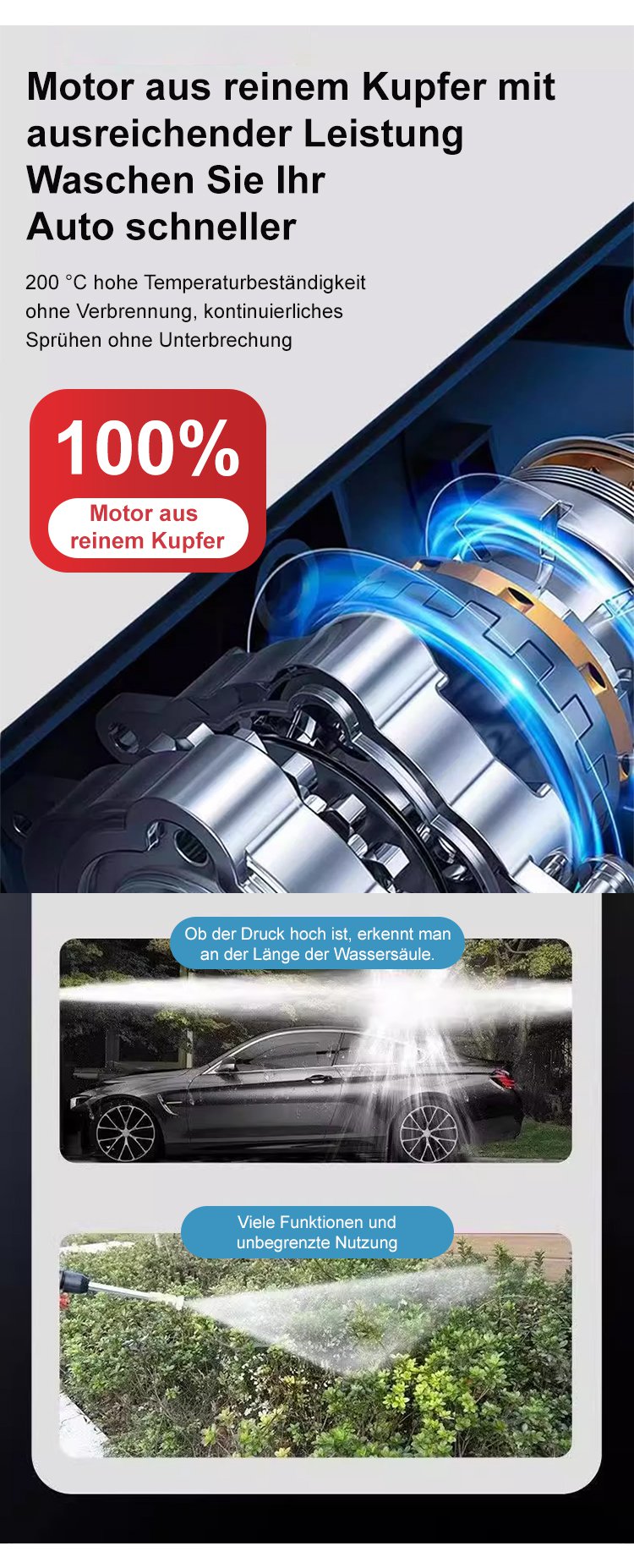 Home Tragbare, wiederaufladbare Hochdruck-Autowaschanlage